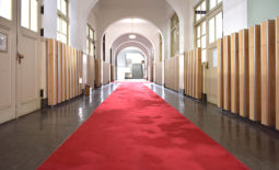 ハイブリッドポールは愛媛県森林そ生緊急対策事業(地域材新規用途導入促進支援)を活用して、 愛媛県庁本館3階廊下に内装木質化の実証展示をしています。