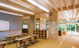 この校舎は、松村正恒が設計した東·中校舎の隣に4つの普通教室を付加した建物で、建築的性能や熱·光·音環境の向上、安全性やバリアフリーの確保、水周りの充実、そして教師と子供たちとの親密な関係性を生む空間づくりなどを目標とした。