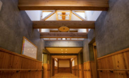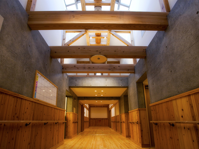 あやめ荘は、愛媛県産木材の活用と高技能の地元大工・職人を活用する在来軸組工法の建物である。 床や壁に木材を使用し、保温性、衝撃吸収性、調湿性など確保し、老人ホームとして人にやさしい設計となっている。