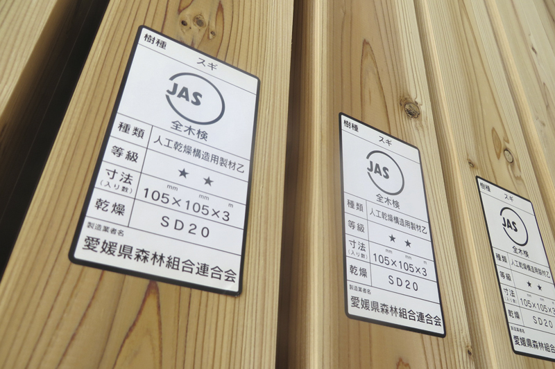 愛媛県から品質の確かな愛媛県産材の生産・販売体制整備・市場開拓を目的に、平成22年6月に設立された協議会です。この協議会は、愛媛県の製材工場や木材関係団体で構成されています。協議会メンバーは積極的な乾燥・機械等級区分等のJASの取得による性能保証のできる確かな製品づくりを行っています。